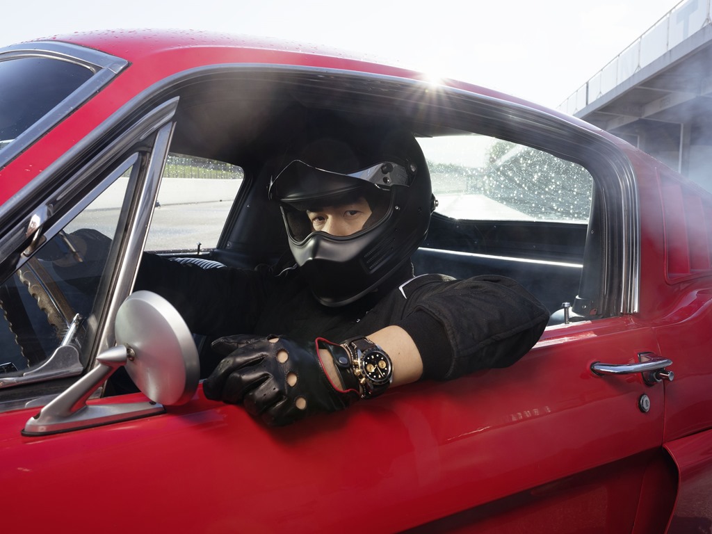 1970 年推出首款計時腕錶以來,帝舵表一直致力設計製造出更多與賽車運動息息相關的系列腕錶。同樣地,帝舵表也擁有悠久的潛水腕錶製作歷史。自 1954 年起,帝舵表不斷提升其專業潛水腕錶的品質。在影片的整個飄移過程中,周杰倫所佩戴的 Black Bay Chrono S&G,大膽融合了碧灣系列代表的潛水錶傳統與賽車界不可或缺的計時錶精髓,既富有運動時尚風格,又洋溢復古懷舊氣息,風格獨具。Black Bay Chrono S&G 的動力,來自帝舵表 MT5813 型計時機芯,憑藉傲人的 70 小時動力儲備、矽游絲以及 COSC 瑞士官方天文台認證,可謂當之無愧的高性能機芯。它以純粹的傳統製錶工藝精心打造,配備導柱輪及垂直計時離合輪裝置。