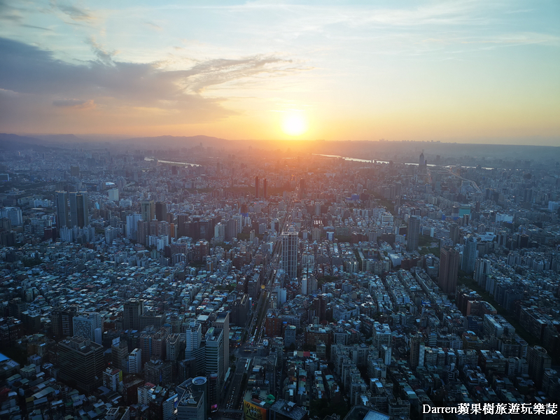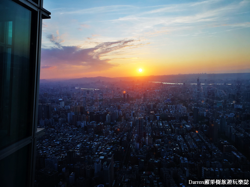 在台北101慢慢逛不知不覺太陽就快下山了,剛好可以拍到夕陽,這角度也只有上台北101觀景台才能拍到真得很美
