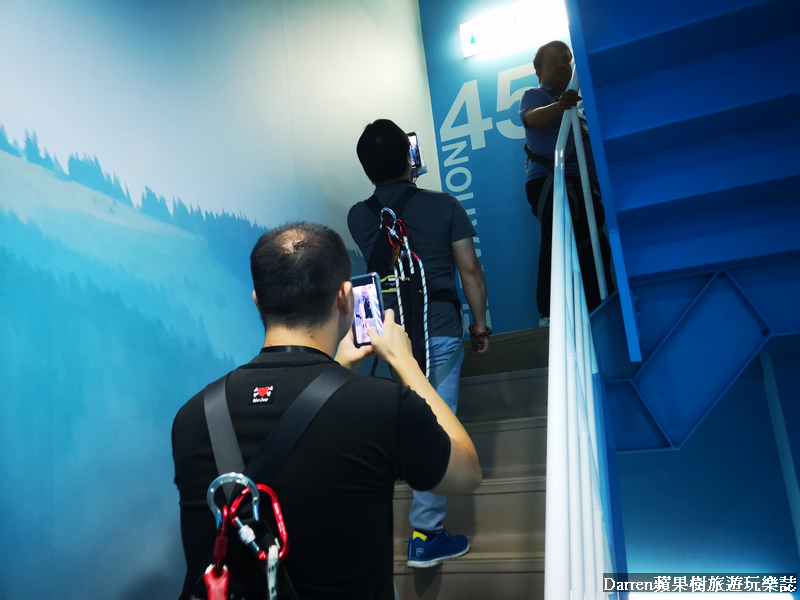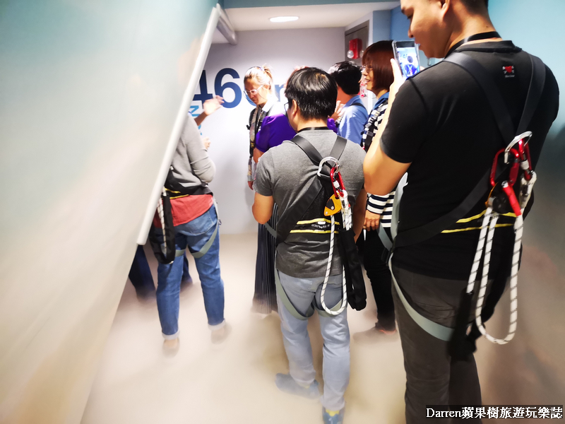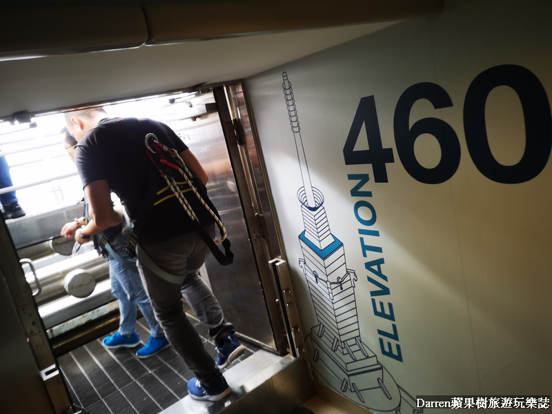 經過換乘電梯登高上樓,終於來到Skyline460,瞬間視野非常開闊,一出來工作人員會協助把裝備衣扣環扣在欄杆上