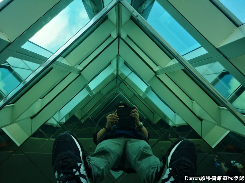 89樓必拍的無限天際站上去有騰空的錯覺,很多人都會直接到窗邊看風景,其實不論拍上面或下面都有萬花筒的感覺