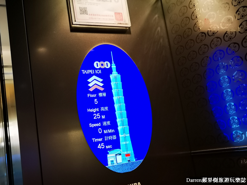 透過電梯圖繪工作人員會介紹我們目前在台北101哪個位置,再換乘電梯繼續上樓,電梯的小螢幕都會有樓層顯示