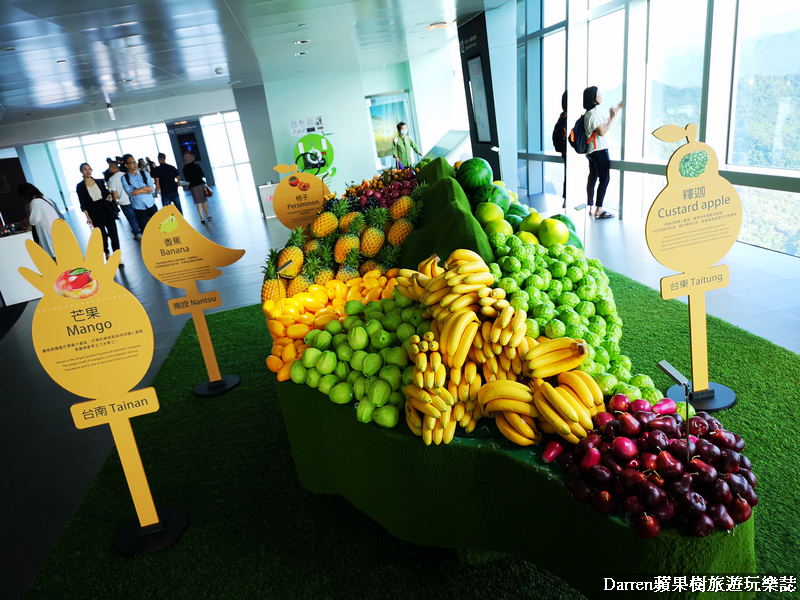 結束SKYLINE 460體驗活動,回到89樓景觀台除了可以透過不同視角繼續欣賞台北景色之外,在館內也正在舉辦台灣水果嘉年華特展,台灣的水果聞名全世界,每次出國回到台灣,心心念念就是台灣水果和小吃,由許多水果模型排列成台灣的形狀,深受許多遊客歡迎,大家都會跟水果台灣合影,看到台東釋迦的牌子,拍著拍著就好想吃水果啊XD
