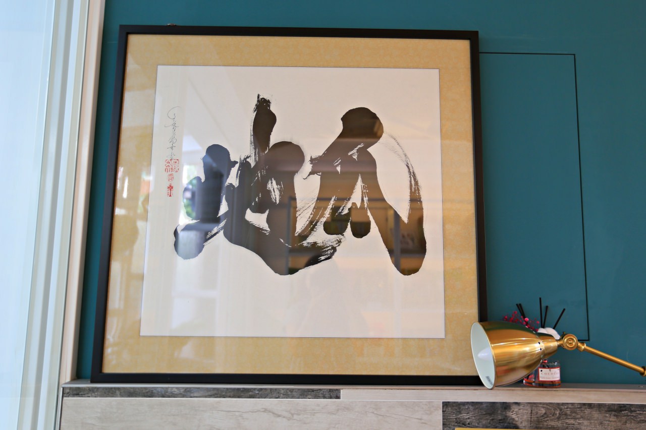 ▲玻璃長桌旁,有著一幅氣勢滂礡的書法寫著「地瓜」兩字,陳列在這個小清新的空間裡,一種復古與創新的結合。