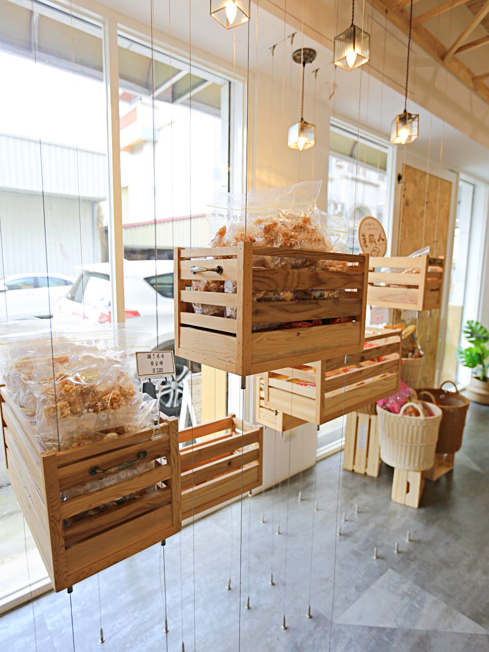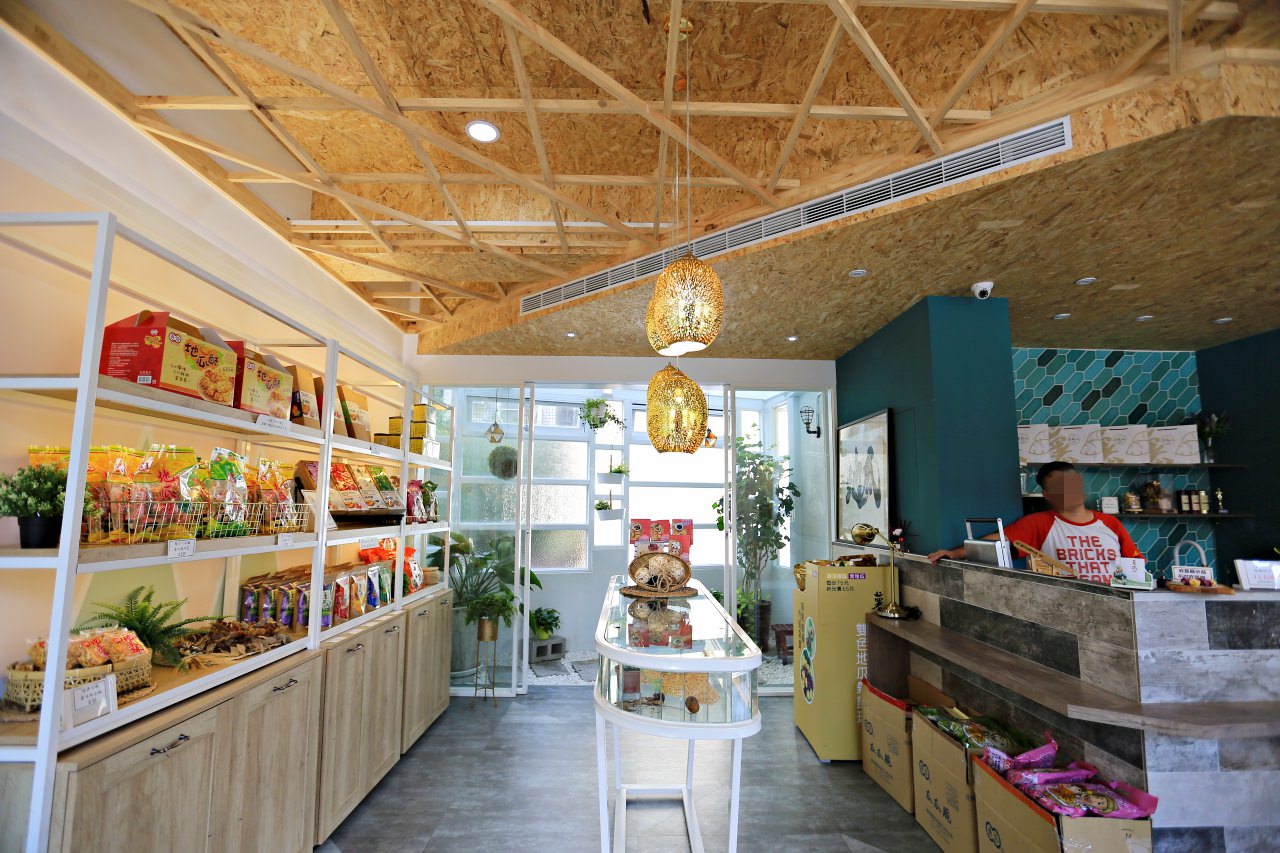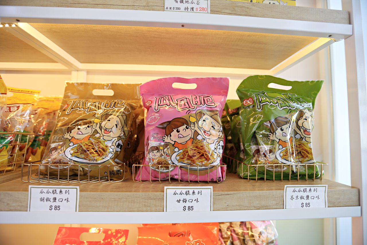 來到嘉義的薯職人旗艦店,最讓我印象深刻就是文青風的質感設計,進門後是明亮簡約風格,寬敞空間用淺色木頭裝潢,乾淨清新。懸掛半空中的木箱好可愛,放著一包包地瓜零食,在欣賞逛逛的時候會不自覺往箱內一探究竟,吧檯上方還有飲料點心可以現場試吃。