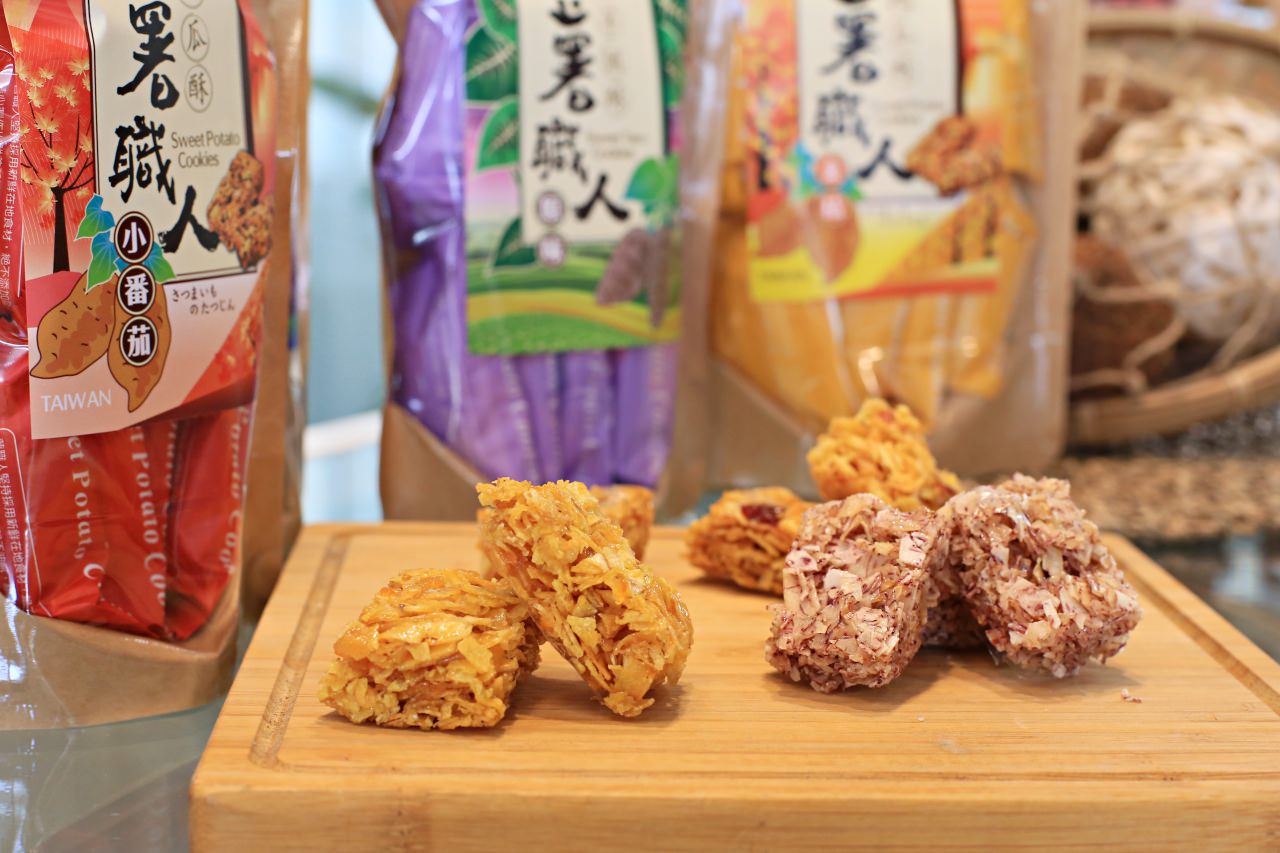 年輕風格的薯職人把地瓜酥變得更加繽紛有創意了!把酥脆的地瓜搭配果乾、堅果,以微甜的麥芽糖勾畫出絕妙組合,創意多變的口味中看似簡單但卻蘊藏著一甲子的功力淬鍊。連芋頭都可以做成芋頭酥了,這種復古零嘴是時下流行的討論話題。