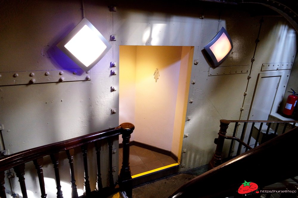 休息夠了決定往下走,發現廁所藏在往下電梯集合處的樓梯邊邊。