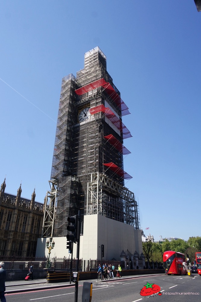 恩,你沒有看錯!!一出來就能看到大笨鐘唷~~~~這是維修養護中的大笨鐘,聽說修很久了還是這樣 XD (2018年去聽說修了四年…不知道真假),由於養護模式所以這個點就是你有看到但進不去QAQ.....。
