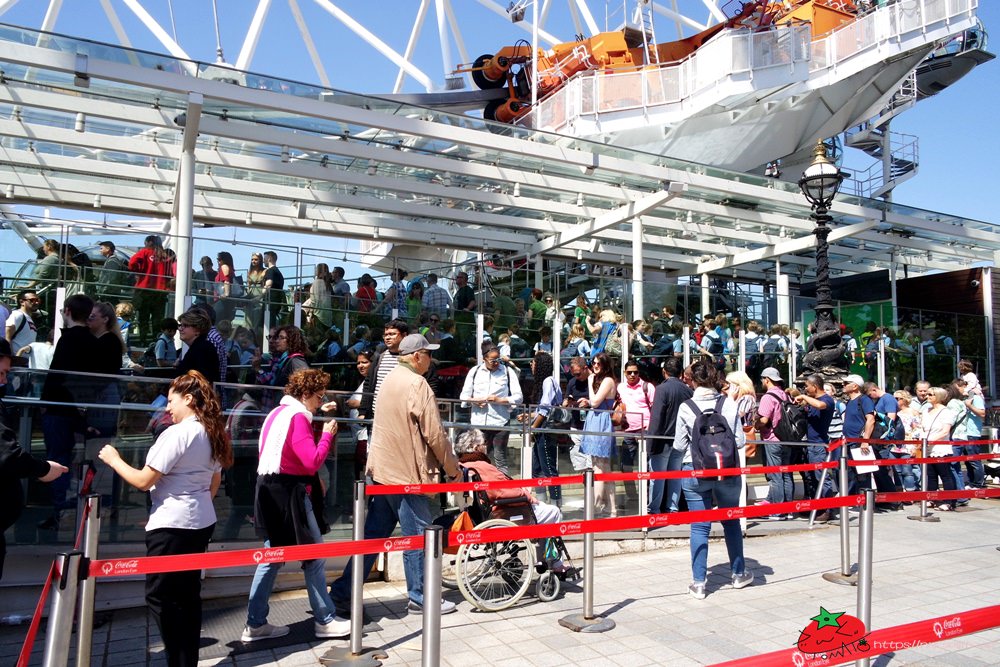 倫敦眼的摩天輪很大,一個小包廂可以塞10幾個人不是問題,轉速也不快,上去視野肯定不錯,但我覺得在下面看就有擁擠的壓迫感。