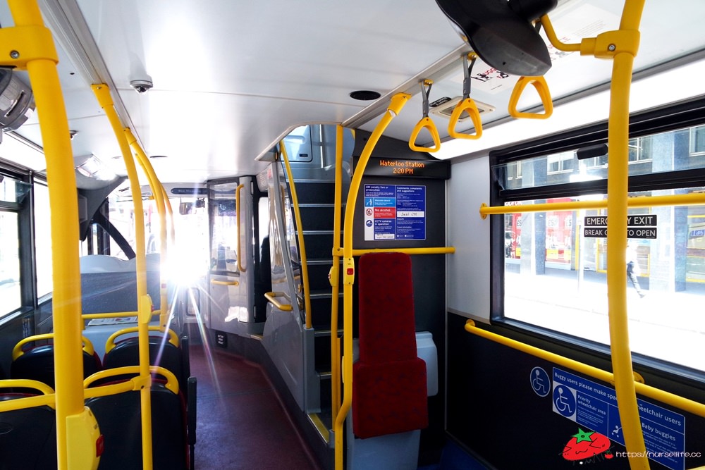 搭乘公車RV1前往倫敦塔橋,怕不會搭公車的其實也可以搭乘地鐵 waterloo站到 London Bridge,但地鐵上上下下人潮蠻多的,我剛好攔截到公車就上去了,上車刷卡,下車不用唷~~(千萬記得到站要壓下車鈴,人家不是台灣公車,過站就不會理你啦~~~)。