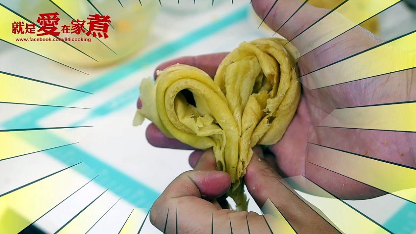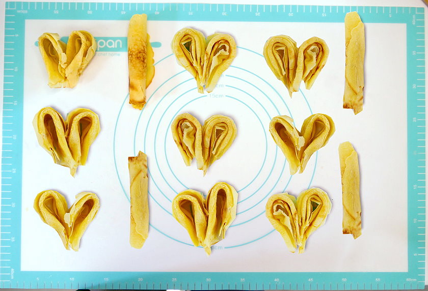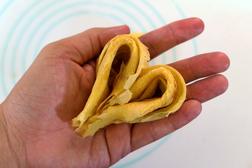 ▼心型蛋捲就是將兩個蛋捲拼在一起,大功告成囉!