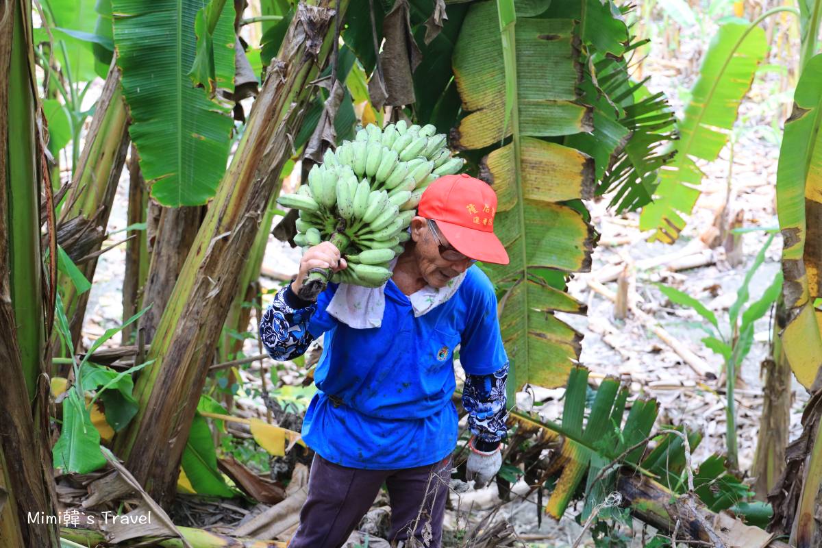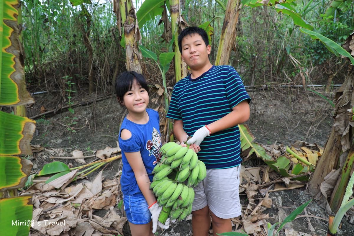 最後也會把採收下來的香蕉大家分一分,每人都可以獲得一串蕉。感覺參加這個活動的大哥大姐們都樂開懷,有的玩又有的拿回家吃,雖然一開始在朱一貴文化園區聽故事的過程小孩認為比較無聊,但中午之後的體驗DIY和採香蕉就很玩得很開心。