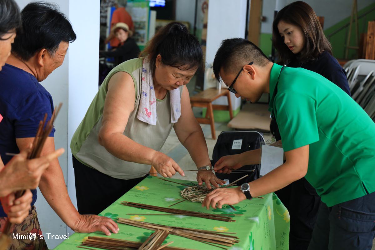 下午要避開太陽,活動安排大家在室內體驗竹編體驗&竹器製作DIY,會由古亭社區的志工們來當老師,因為泥岩惡地中最常見的植物就是竹子,俗話說靠山吃山靠海吃海,所以生活在泥岩惡地這樣環境中的人們,當然也發展出屬於他們的竹編技藝與竹器文化。