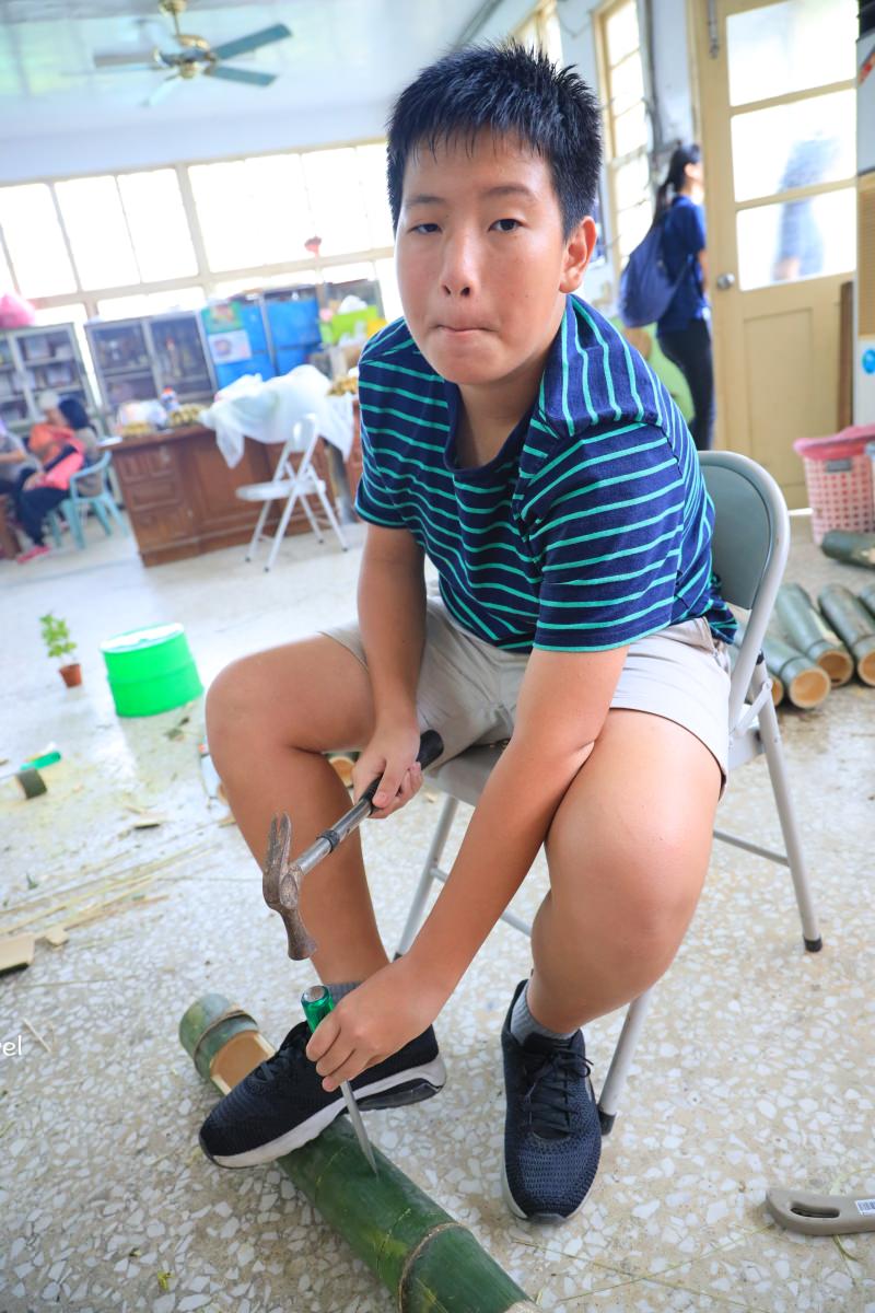然後哥哥對需要巧手的竹編就沒興趣,但像是可以動手鋸、敲的竹器製作就是他的菜。可以跟著老師試著把一根根竹子變成花盆、存錢筒、掛飾⋯等用品,只能說處處都是人們的生活智慧呢~