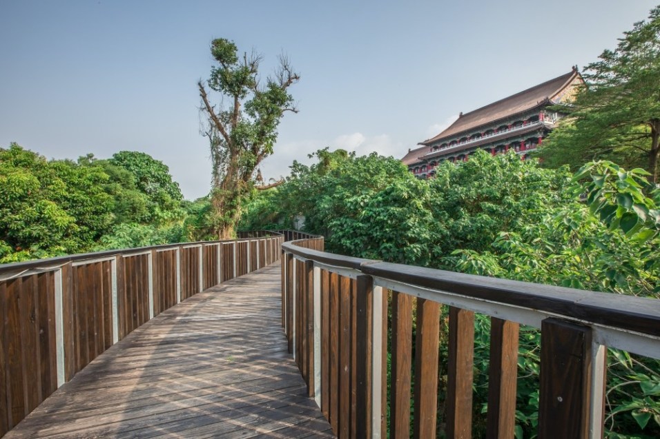 再來這個部分,應該就是高雄圓山最有莊園度假村感受的景觀木棧道,這個木棧道直接連通高雄圓山跟澄清湖風景區