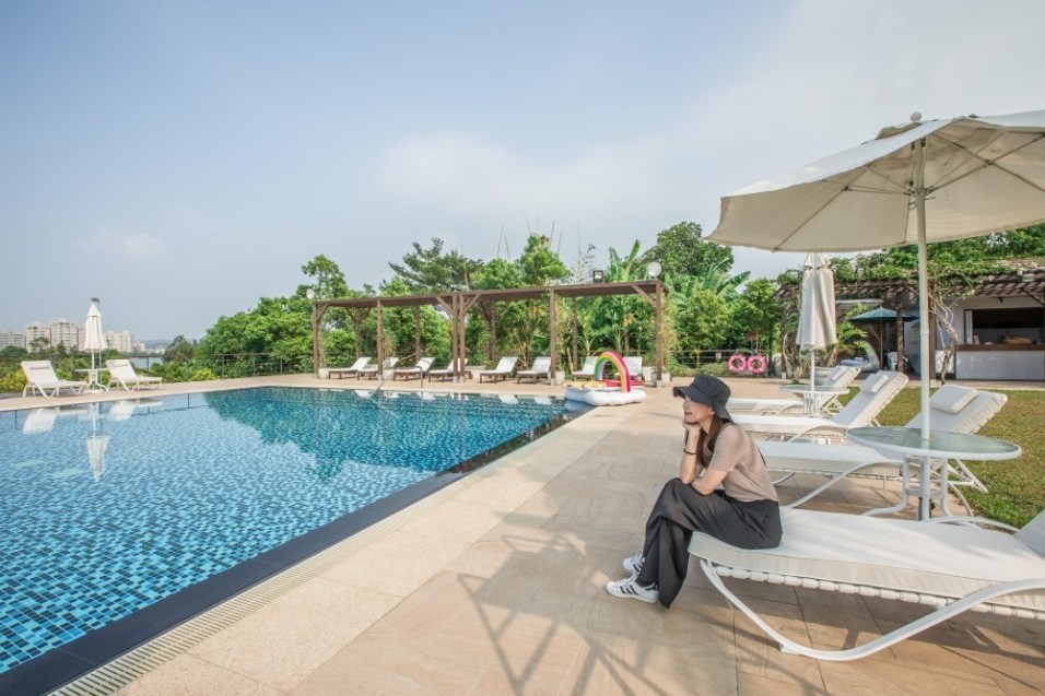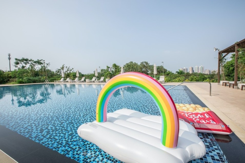 簡單而不雜亂的配置,不管你是要真正下水游泳或是在一旁做日光浴(甚至是純粹拍網美照)都很適合