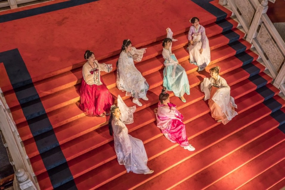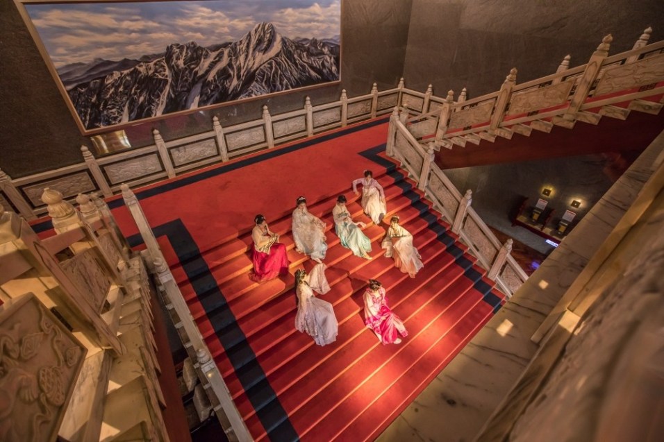 直接走上超級有戲劇感的大型樓梯之後,就能感受到像是進入另一個世界般的華麗感(造訪當天有不少穿著古裝的女士們在這裡拍攝開箱照,還真的蠻有趣味感的)
