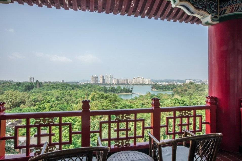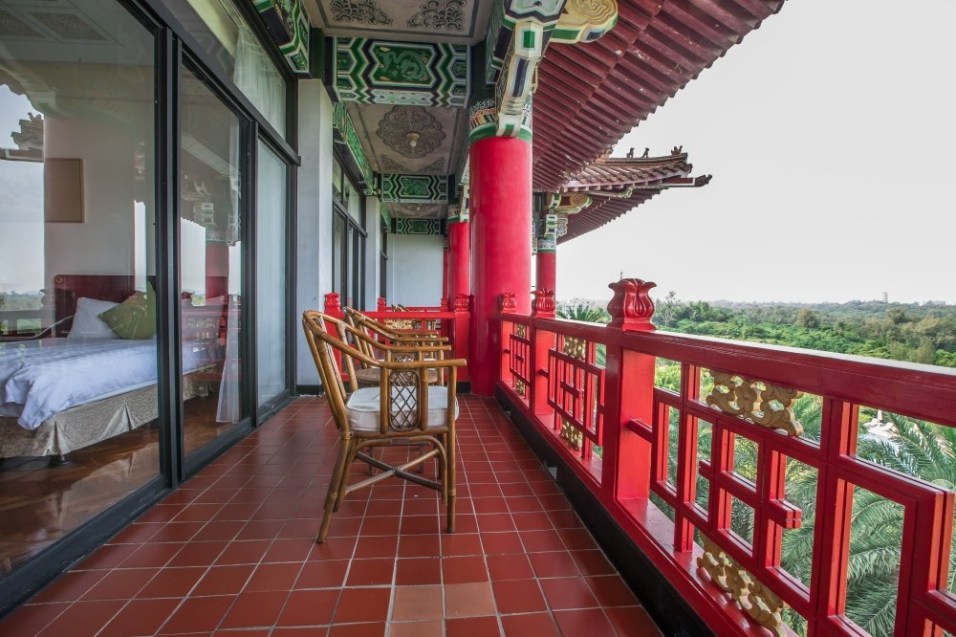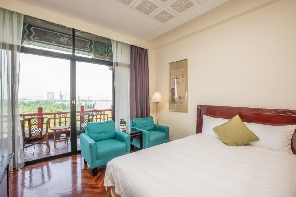 再來,高雄圓山每一間客房都有陽台,湖景這一面就是面對澄清湖園區的極致景色