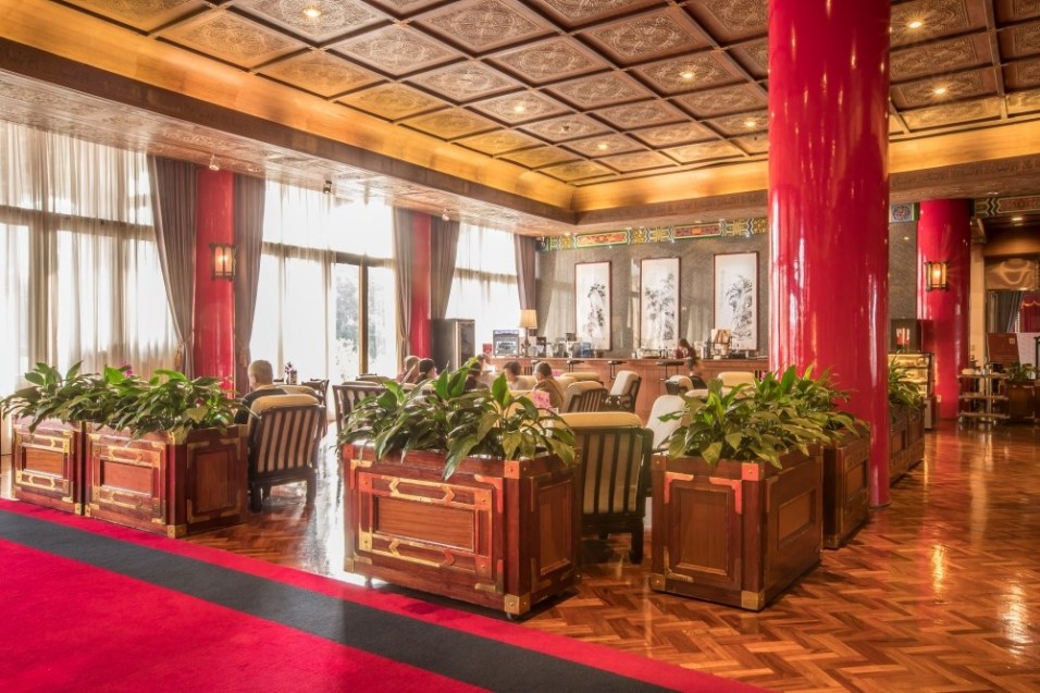 走進飯店裡面,果然就如熊的預期,超級氣派的紅色視野,再加上很有雕梁畫棟的木質調氣氛,真的給人一種走進行宮的時代感受