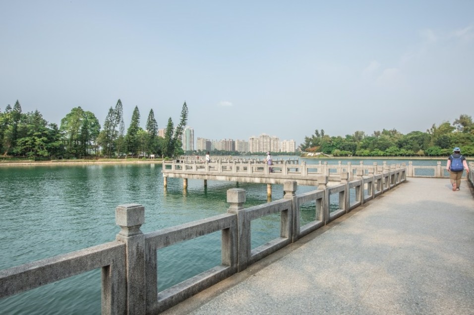 順著木棧道走進澄清湖風景區,最重要的拍攝重點就是九曲橋