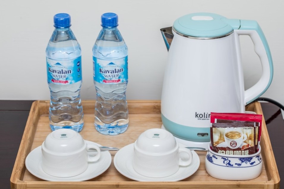 迎賓水果與瓶裝水,還有咖啡茶包一應俱全