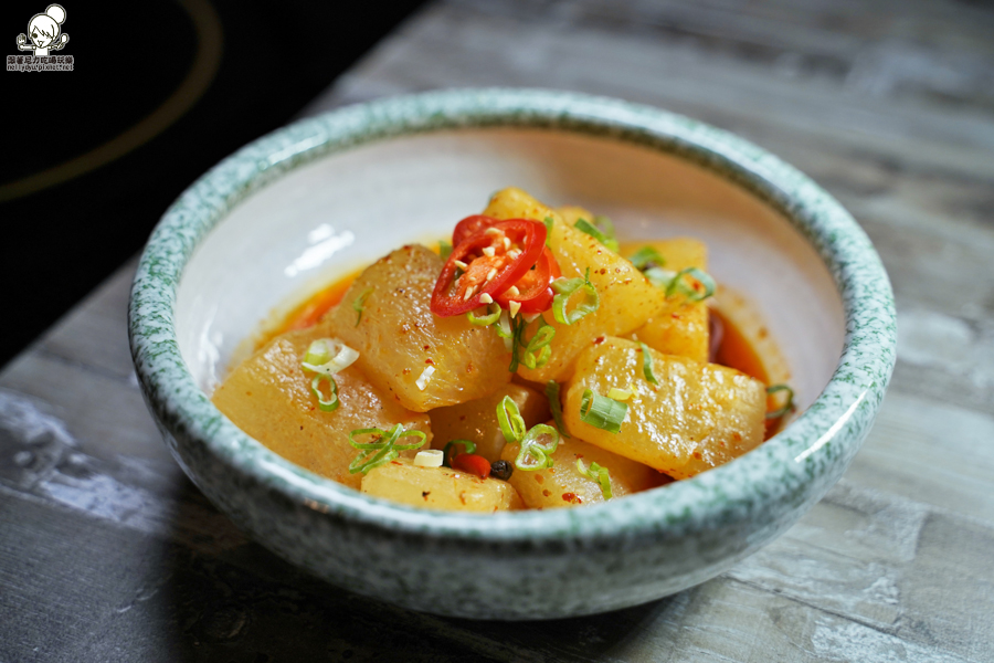 抿在嘴裡會爆湯汁的菜頭,帶有紅油麻麻香氣