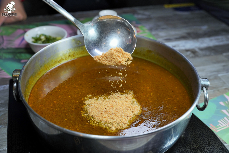 主廚使用黃金比例的沙茶、咖哩、椰奶拌炒,帶入大骨湯底的精華香氣融入