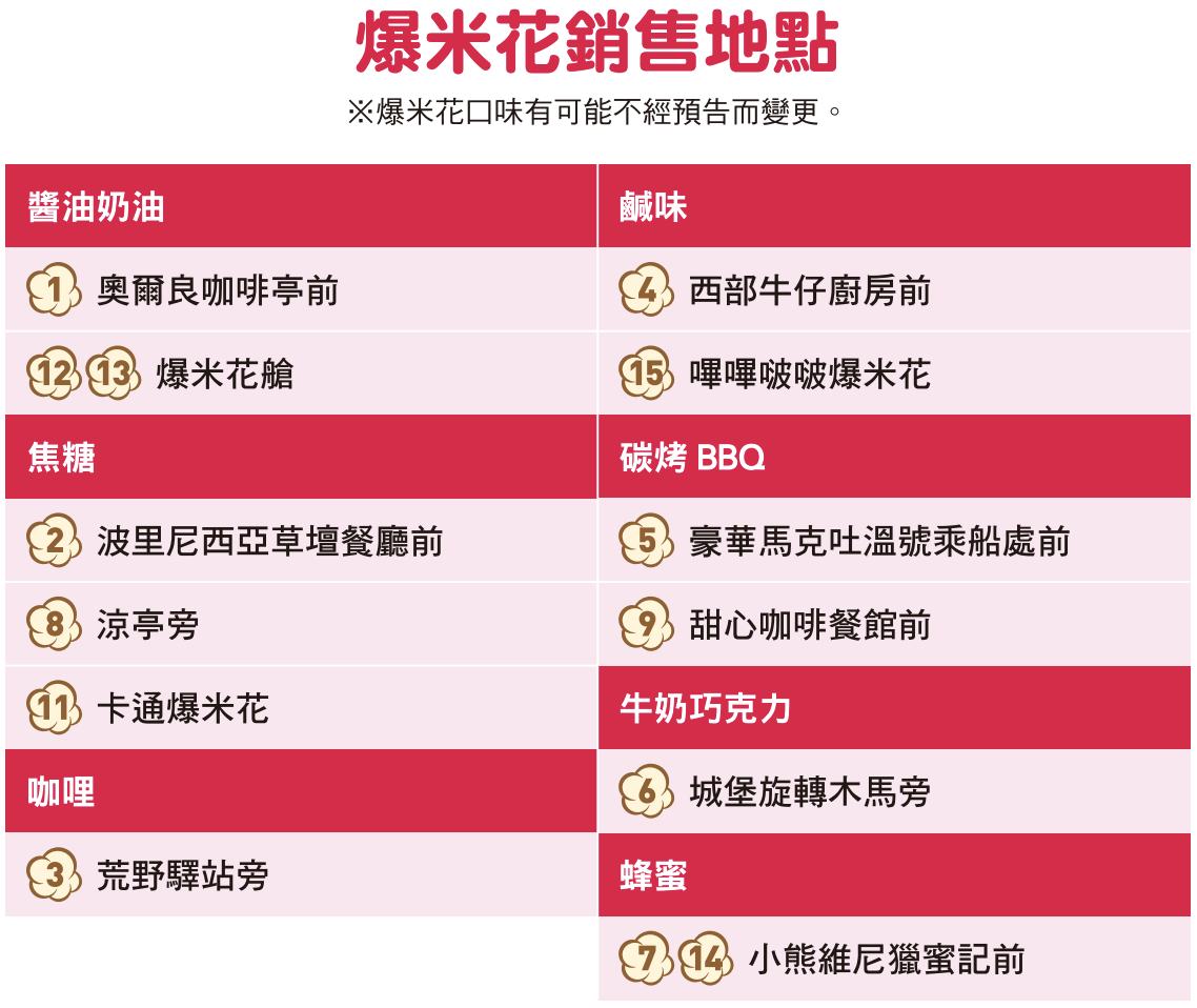 桃紅色星星就是座位所在地,黃色圈圈則是抽位置的地方,在明日世界旁邊,你去玩過山車、怪獸電力公司時順便抽就好。海洋在碧莉葉特利亞抽選,抽選規則與陸地相同。