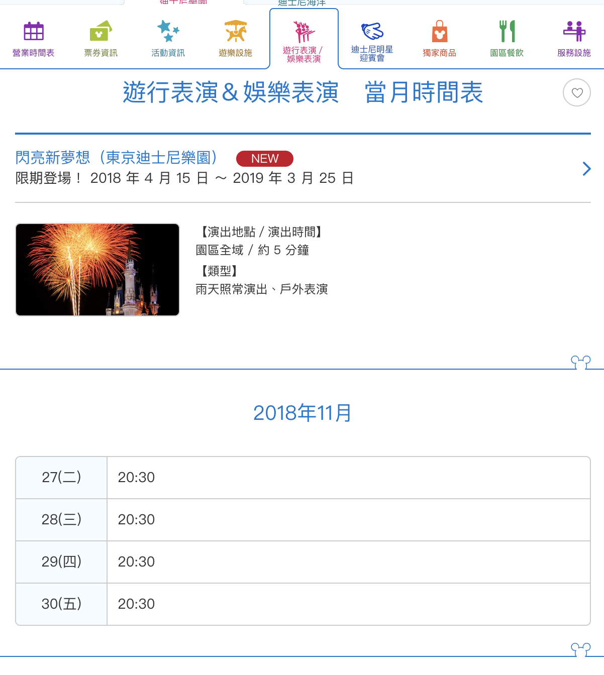 步驟二:開園時間、煙火秀、遊行時間查詢:查詢