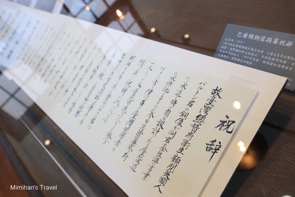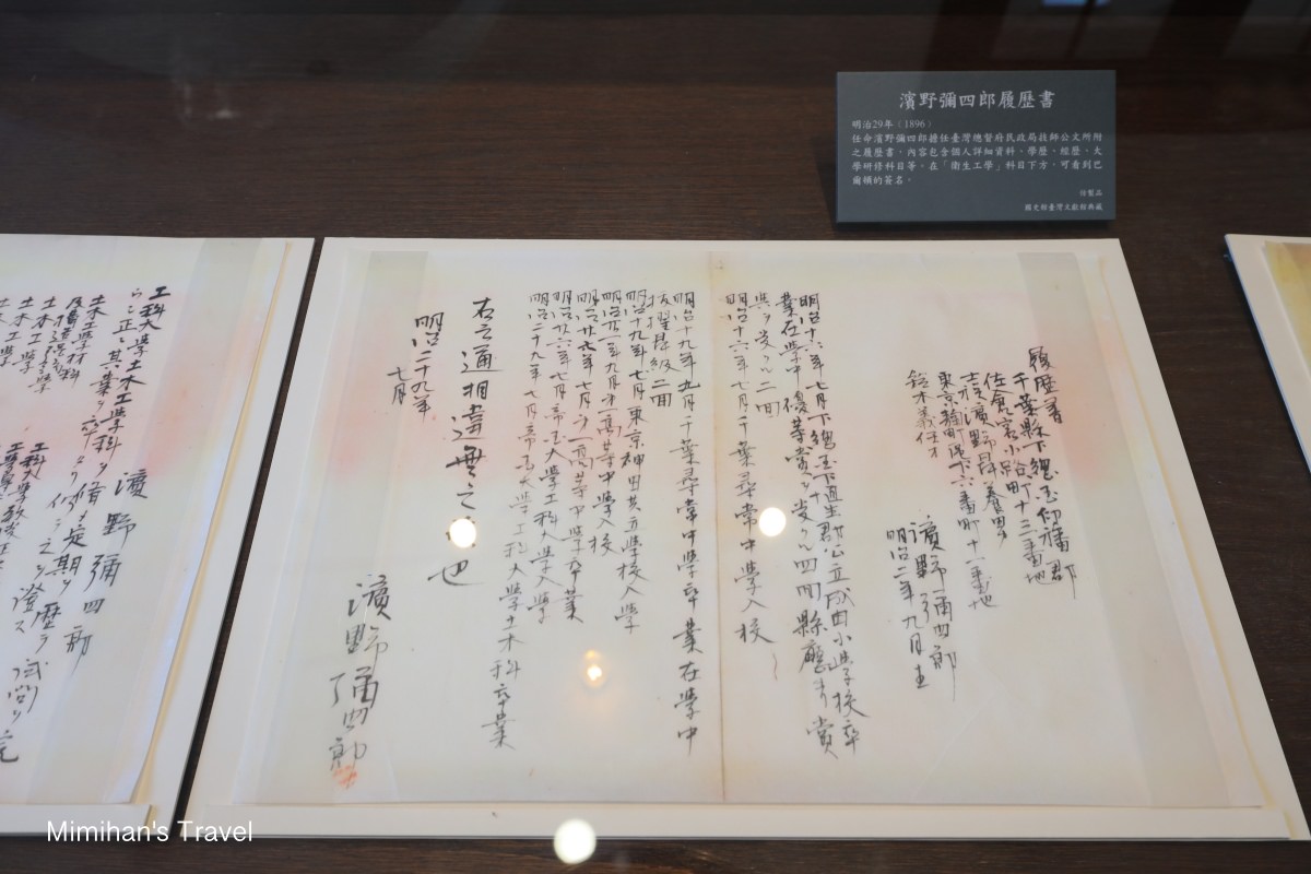 現場還展示了許多當時保存下來的歷史文物,像是明治29年濱野彌四郎的履歷書、1919年巴爾頓銅像揭幕的祝詞⋯有興趣的話不妨細細品味。