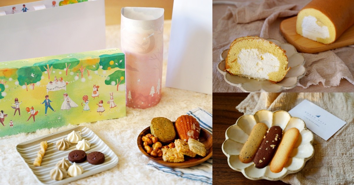 走進店內,小小的空間有一長桌,若是想要內用可以稍坐休息,想要試吃喜餅、了解喜餅搭配的方案、彌月送禮細節,也都可以在這裡與店家細聊,比起網路文字聯繫,面對面的溝通更有效率且有溫度。細細品味這次試吃到的常溫甜點與生乳捲,天然無添加的製作過程,讓我們全家吃得開心又安心。特別請插畫師設計的兩款包裝禮盒,質感極好,收禮的人絕對能感受到滿滿的喜悅與誠意。