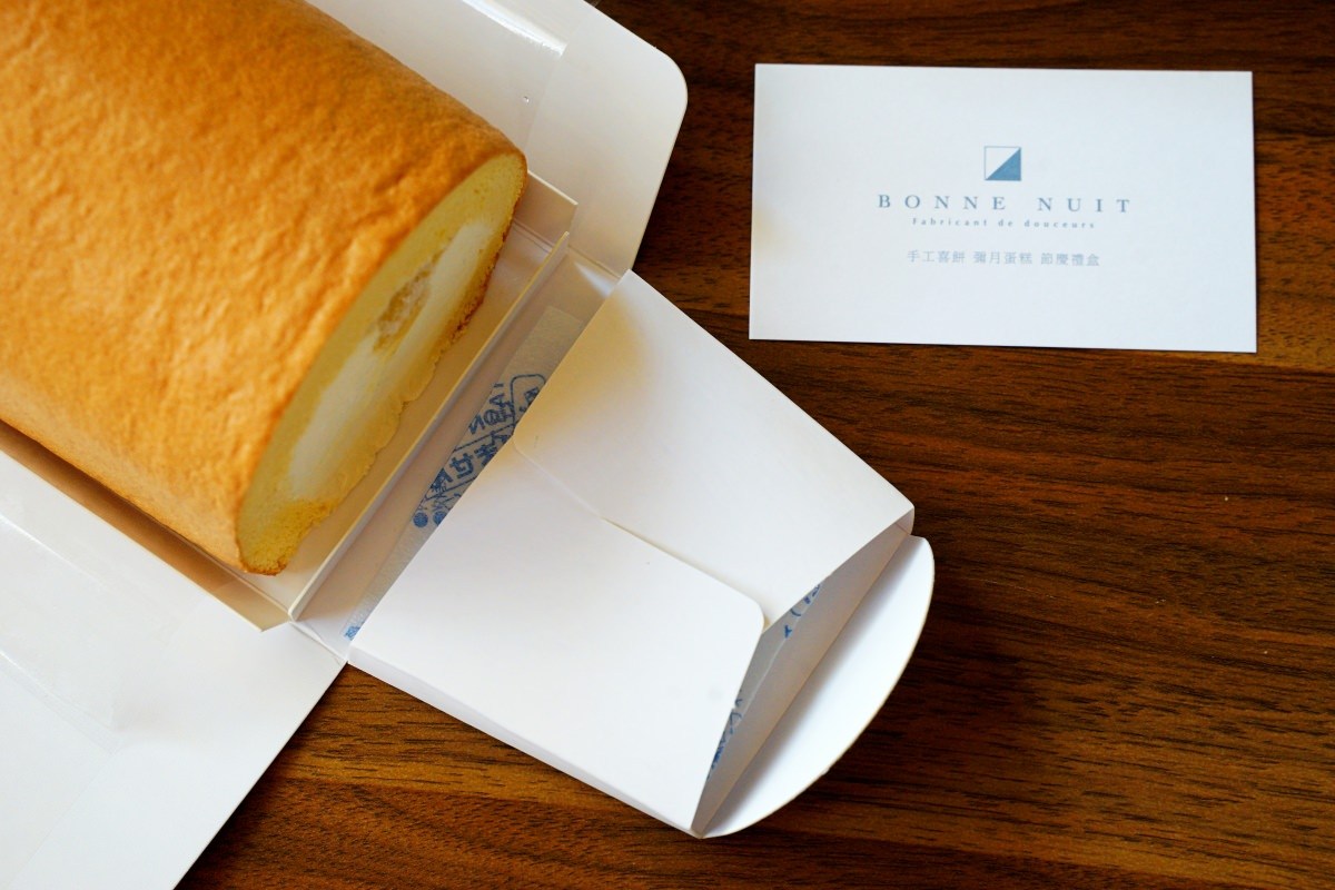 晚安點心坊推出彌月生乳捲,有六種口味,這次分享的是大溪地香草卡士達。禮盒包裝與插畫師 Reiko 合作,是最新的小狐狸圖案。使用特殊的圓弧狀禮盒包裝,有別於其他品牌的生乳捲包裝,採用兩層日本美術紙設計出層次剪影,獨立的外盒包裝,之後還可以拿來套在小夜燈外面,做出小狐狸童趣的剪影燈,非常用心且特別。