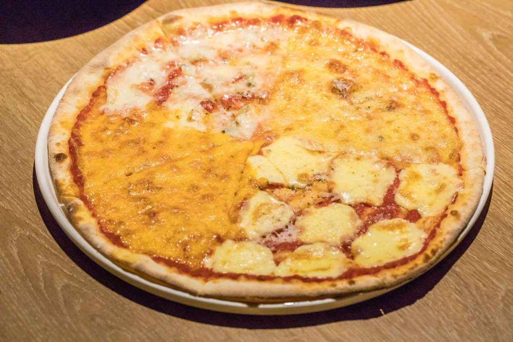 而所謂的四種起司,則是包括了切達起司跟帕達諾起司,還有瑪茲瑞拉起司跟拱佐洛拉起司,平心而論以起司本身來說都很香濃,吃起來口感也很紮實飽滿