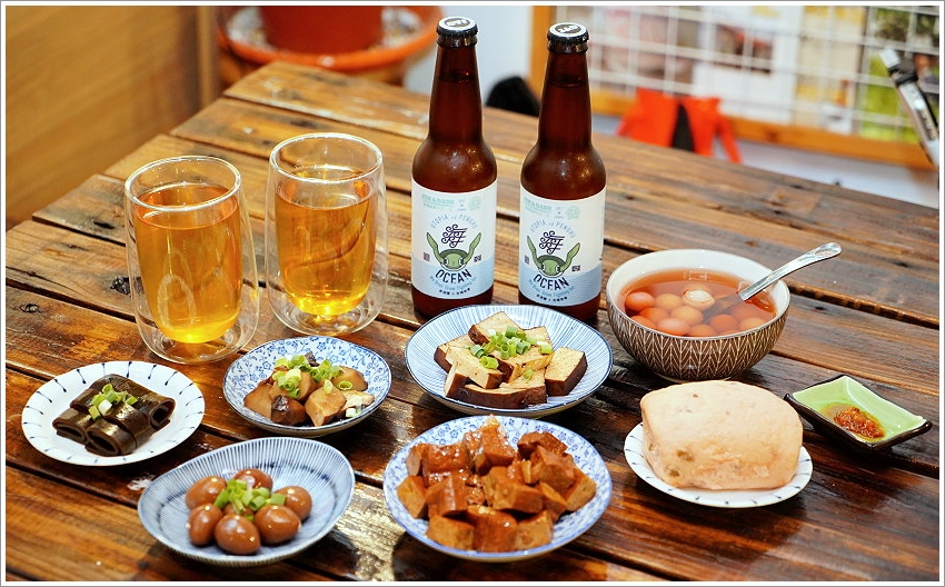 ▼好菜上桌! 除了滿滿的滷味,其中亮點有二,第一是澎湖限定的啤酒,澎湖國啤酒|海 ocean,這是一隻帶著葡萄柚香的美味啤酒,也不是隨意店家都可以販售,我見到申請販售的網路申請單上嚴格的要求店家寫出為什麼喜歡澎湖等問題,需要有著喜歡澎湖的理念,老闆說也有外國旅客為了蒐集這隻啤酒不惜大老遠來詢問! 第二是暢銷的手工饅頭,草根果子有著很多的手工美味,其中這一味堅持手工、老麵發酵的饅頭是由媽媽製作,客人讚不絕口!