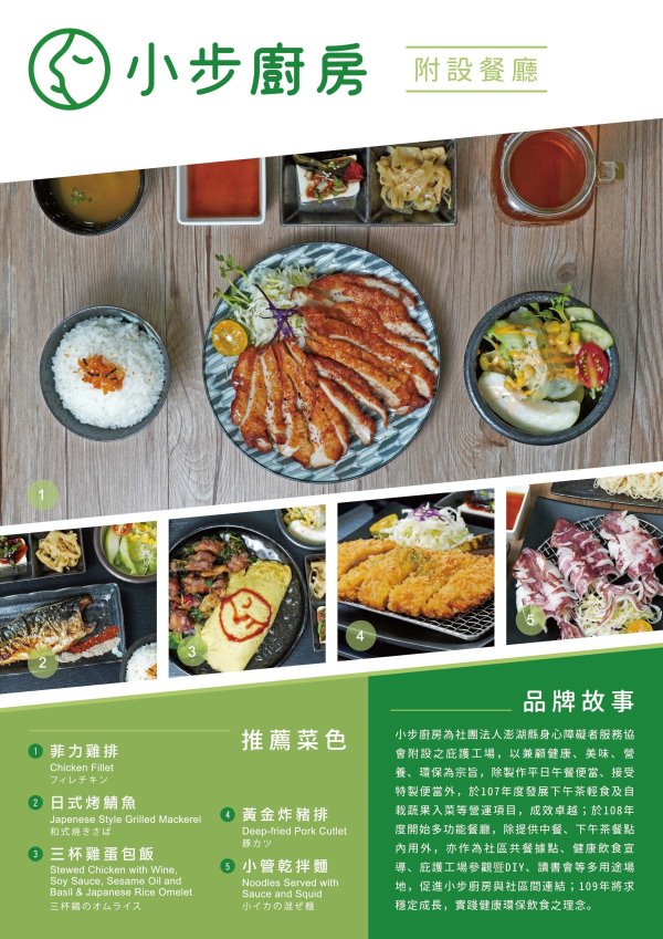 ▼小步廚房跟之前介紹的餐廳大有不同,因為這裡是澎湖縣第二家庇護工場,這裡製作顧及健康美味、營養且環保之餐食,在停車與餐廳位置上都有著寬敞的優點。