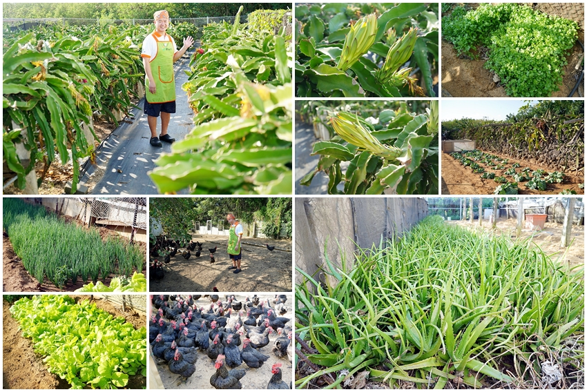 ▼最後老闆還帶大家去逛了餐廳後方的農場,非常的大,從火龍果、香菜、蔥、蘆薈都有,滿滿的菜園,還有自己養的雞,根本是快樂農場(笑)!