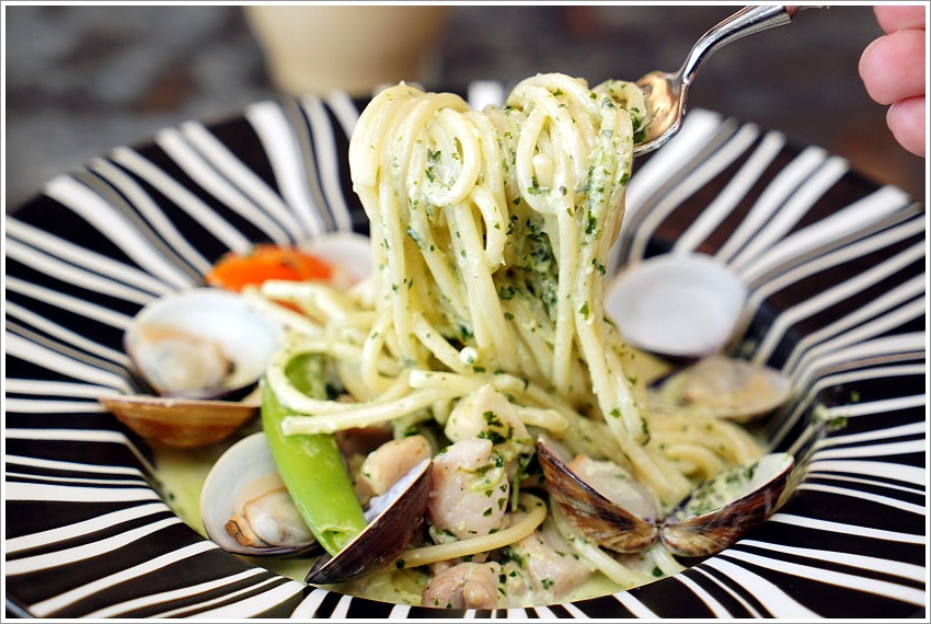 ▼蛤蠣嫩雞奶油青醬義大利麵,帶著海味的蛤蠣與奶油青醬的不敗搭配,醬料收汁恰到好處,是我愛的濃郁口味!