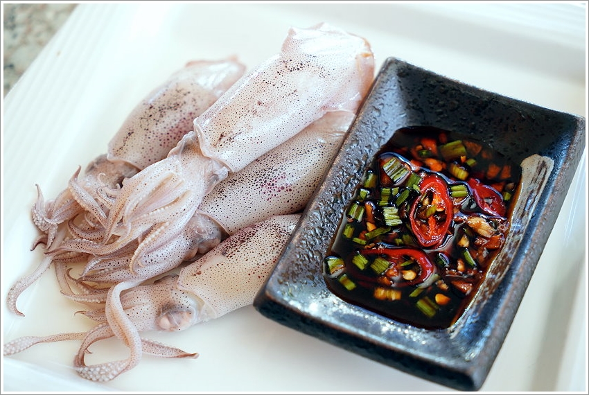 ▼搭配澎湖鮮蝦、花枝、小黃瓜與些許九層塔,我覺光是九層塔與蝦肉就讓人喜愛,加上泰式甜辣醬更是完美,來客必點的美味!