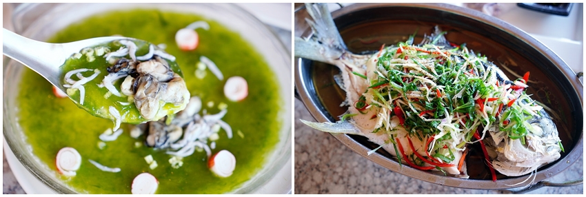 ▼海鮮芙蓉羹與古早味醃菜佐鮮魚,不過這天恰好是蔥絲佐紅魽,店家通常會依據現有食材做一些調整,總之都是新鮮又美味的料理!