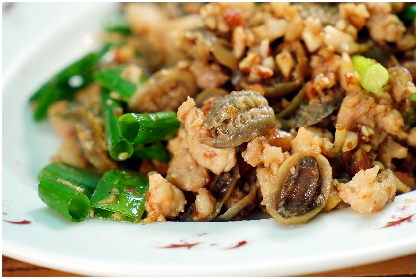▼炒石鱉,石鱉也是台灣本島罕見的美味,形狀扁平、緊緊吸附在石頭上的石鱉有點像是某種貝類,不僅料理過程繁瑣,而且還得洗淨、燉軟才能下鍋快炒,吃起來Q軟又有濃濃海味,既下飯也適合配酒!(未滿十八歲請勿飲酒)