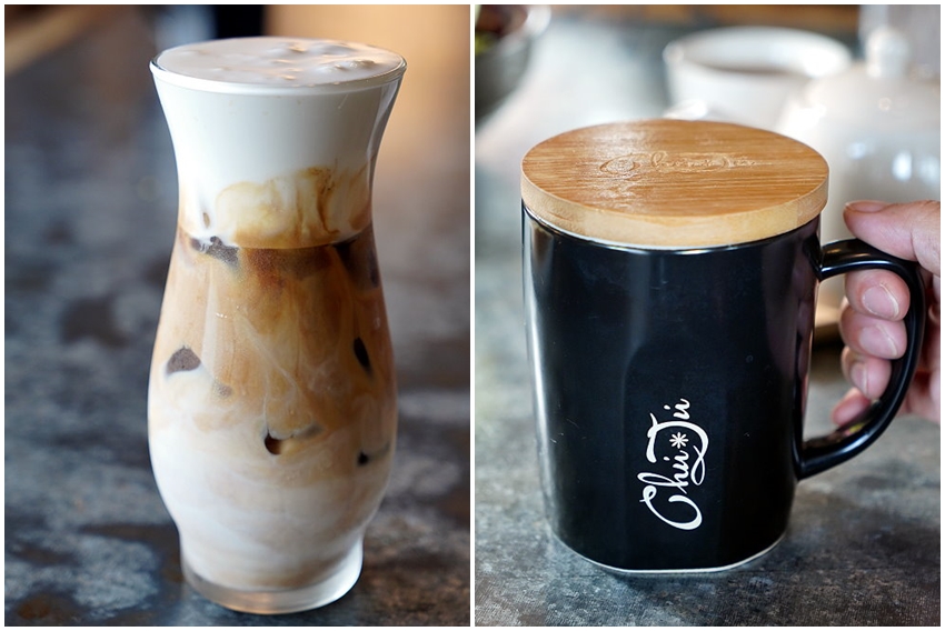 ▼拿鐵與熱的黑咖啡,拿鐵上滿滿的細緻奶泡,喜愛奶泡的朋友不可錯過! 而黑咖啡則是用印有ChuJu雛菊餐桌LOGO的杯子來享用,搭配餐點很適合。
