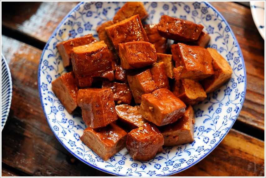 ▼吮指豆干,帶著鹹甜適中與Q彈的好口味! 讓人愈吃愈開胃的誘人滷汁,這裡的滷味口味適中,剛好來一杯啤酒或養生茶恰到好處,豆干也是草根果子的招牌!