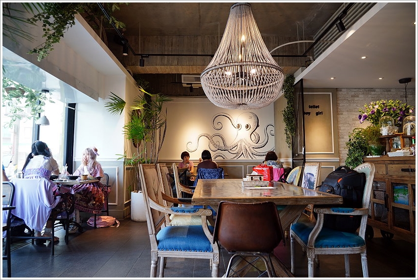 ▼(左上圖)本來已為這是餐廳裡的工作人員,沒想到這是正港的客人啊! 餐廳裡也太適合Cosplay了吧! 完全無違和感呢! (大圖與左下圖)各式各樣不同的椅子讓空間充滿驚喜,吧檯前還使用了澎湖的咕咾石做裝飾。