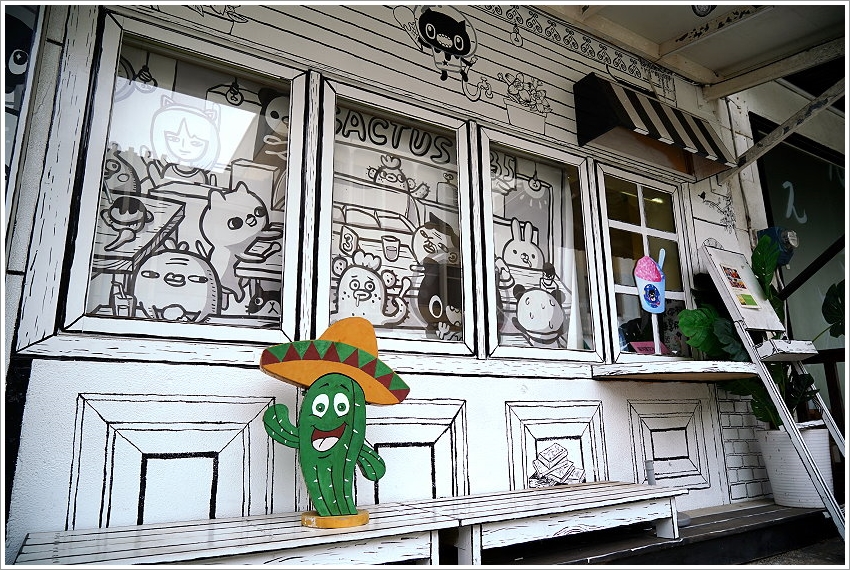 ▼大家可以坐在門口前的矮凳拍照,一旁還有可愛的仙人掌公仔可以合影,可愛極了!