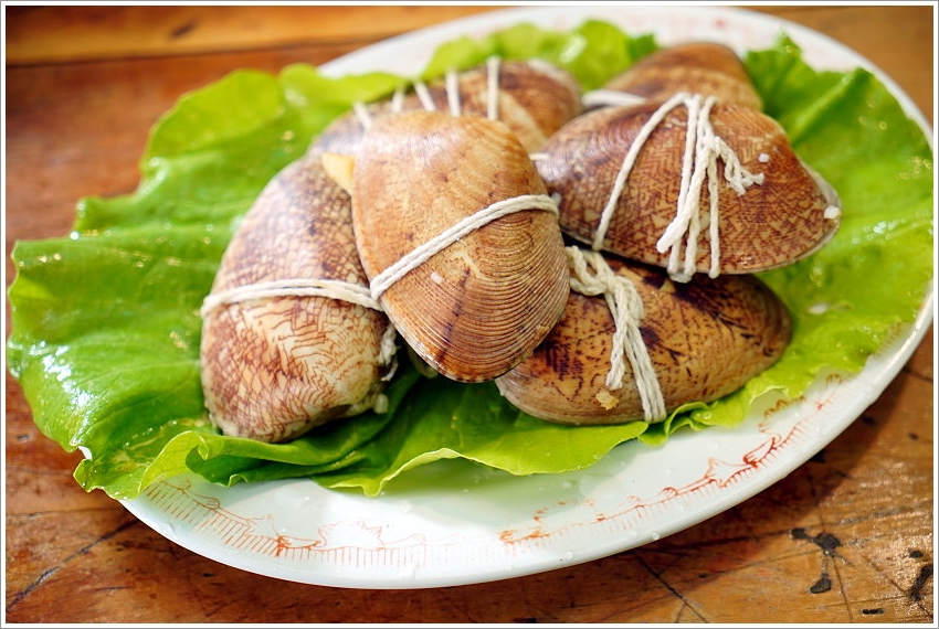 ▼澎湖古早習俗,蛤仔飯是清明掃墓時吃的,吃完殼當錢幣丟在墓旁邊,也象徵給祖先一些零用錢,在這裡也品嚐得到。採用澎湖在地的大蛤,剖開之後再加入糯米與其他食材下去蒸煮,又稱為澎湖粽子;米飯吸附滿滿大蛤的鮮美,軟嫩鮮甜的滋味讓人好愛!