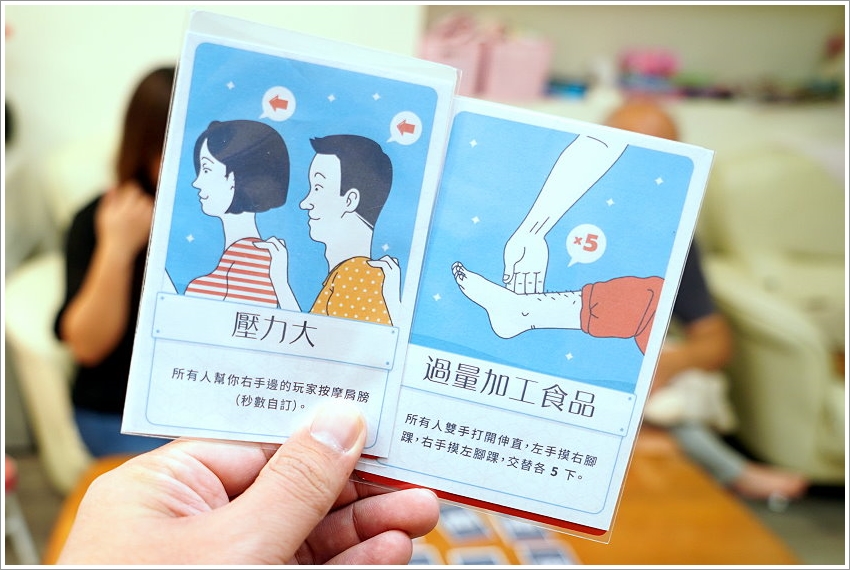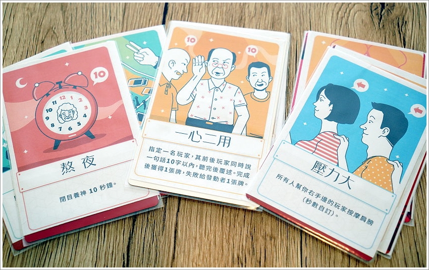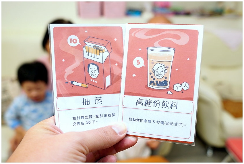 ▼此外也有閉目養神、一心二用等讓你可以獲得身心舒緩、動腦活用的指令,真的很適合跟長輩一起玩耍!玩過一輪後,大口的爸媽覺得這遊戲簡單又有趣,而且還可以全家同樂,連小朋友也可以一起參與,其實還滿不錯的,有空都會想來玩一下!