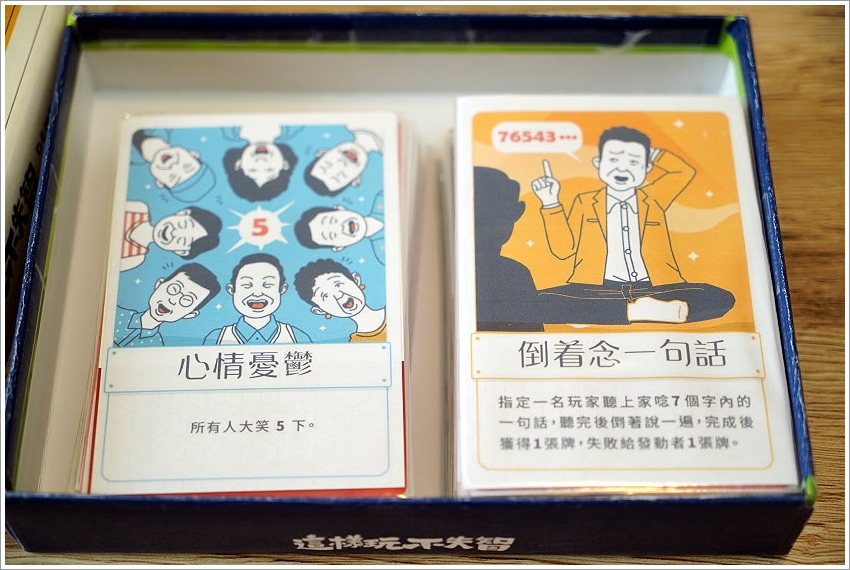 ▼背面還有簡單的介紹,玩法也很簡單,只要從覆蓋的卡牌中翻出一樣顏色的卡牌即可得分,還可以指定玩家執行卡牌上的動作,不僅可以動動腦計算分數,還可以進行簡單的身體運動、跟家人朋友間的愉快互動等,而且玩起來輕鬆又歡樂,連長輩也能快速學會!