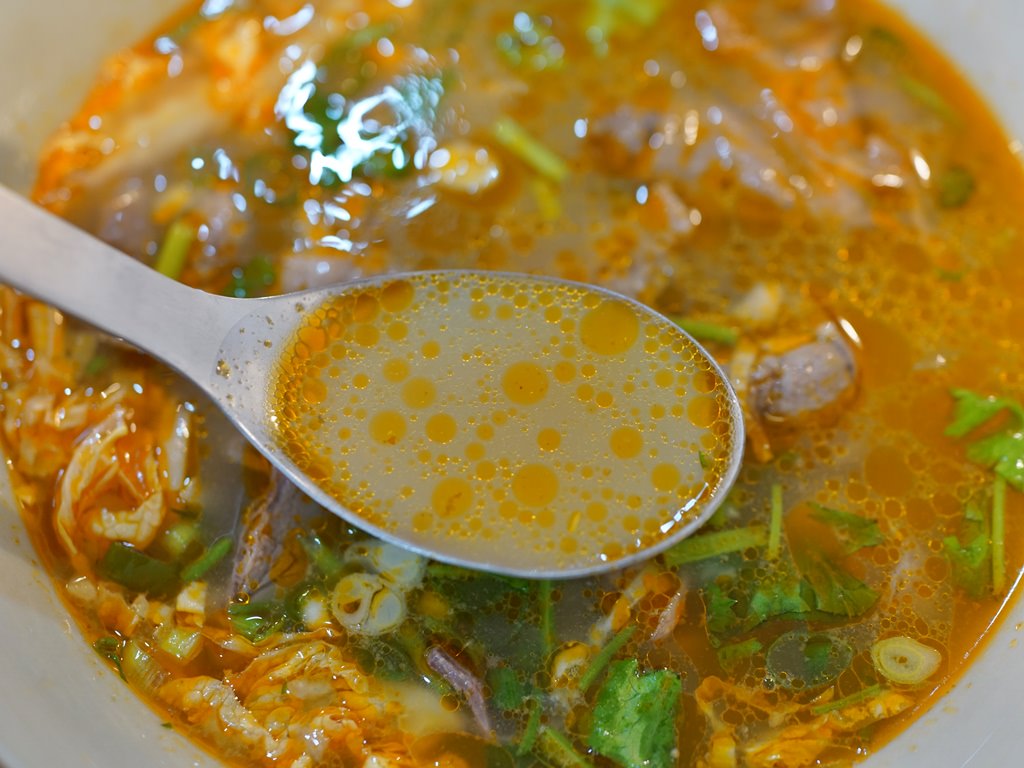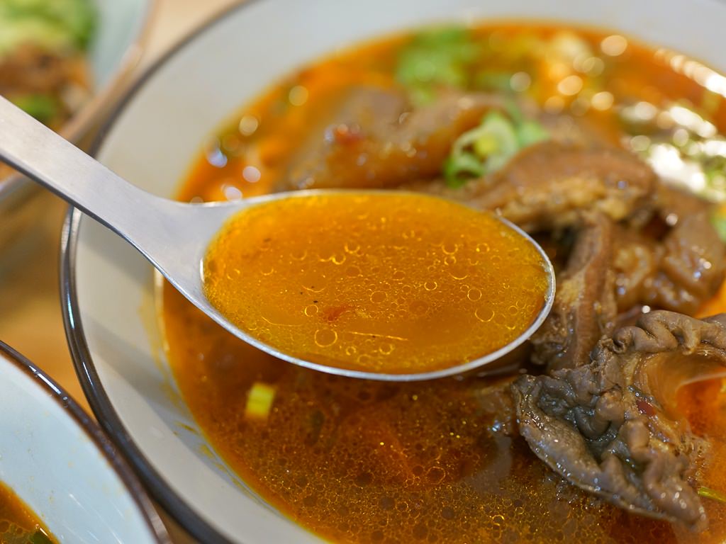 店家的湯頭是使用牛骨熬煮多時,再加入數種中藥材而成。