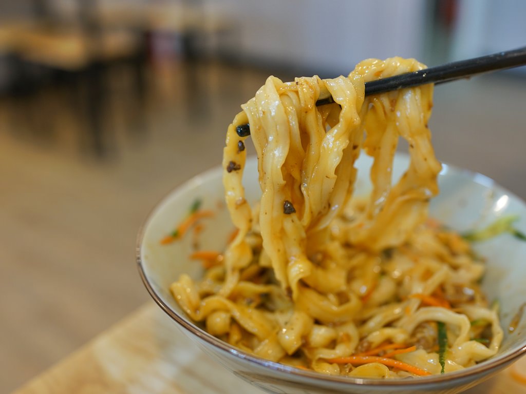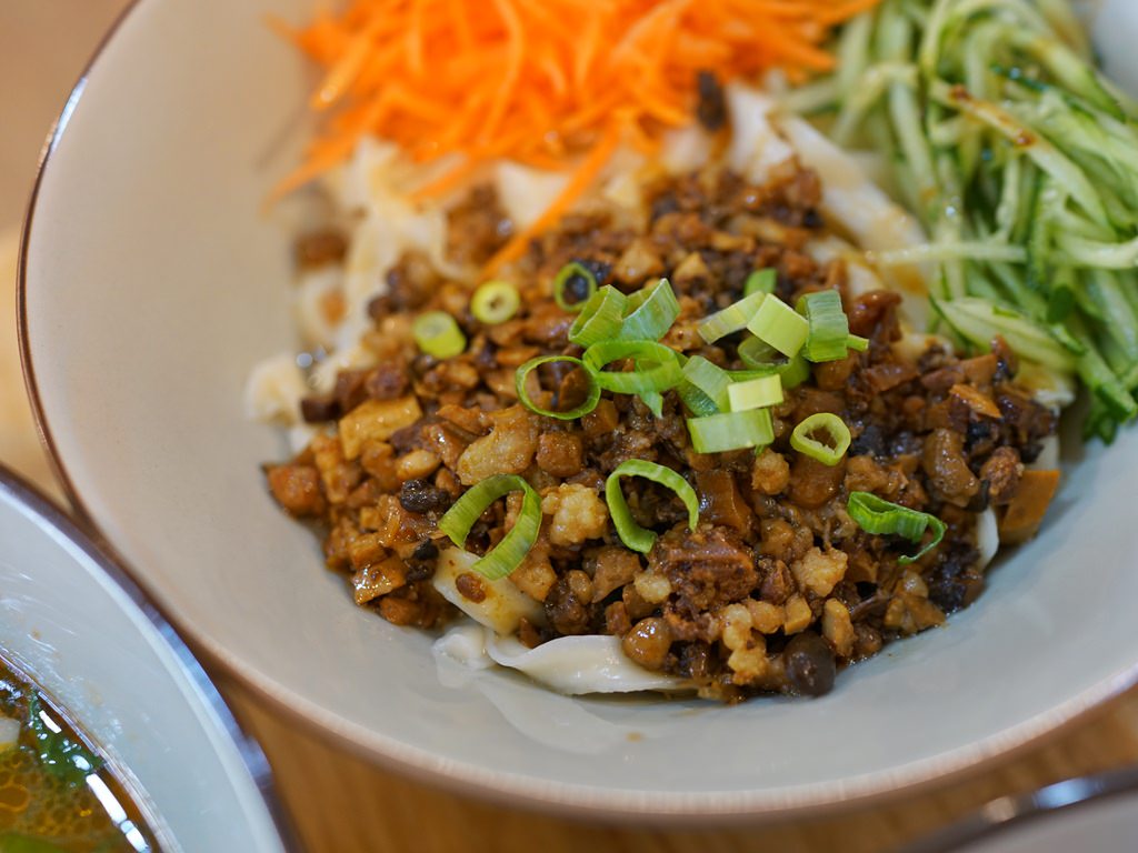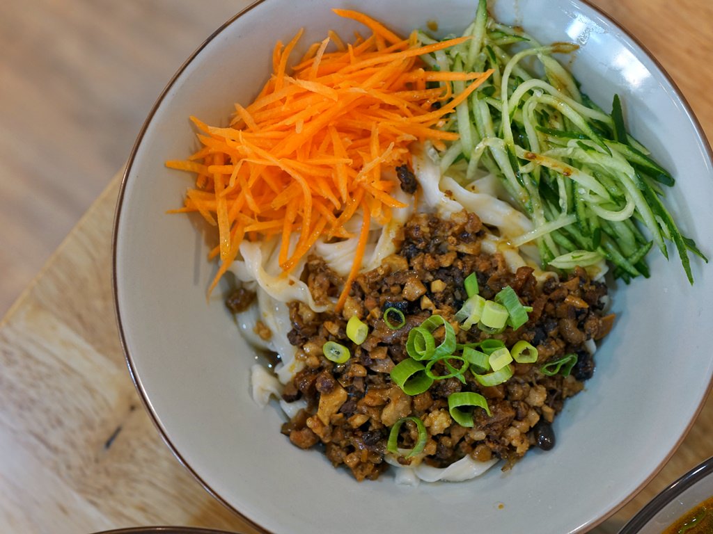 這碗我也超愛,跟台灣的炸醬麵味道完全不同,台灣的口味偏鹹,他們的則是鹹香適中,攪拌過後每一條麵都吸附了醬汁,吃起來入味卻不死鹹,搭配大量的紅蘿蔔絲與小黃瓜絲,讓整體口感更加清爽、有層次,麵條的口感又很Q,讓人忍不住一口接一口呀!