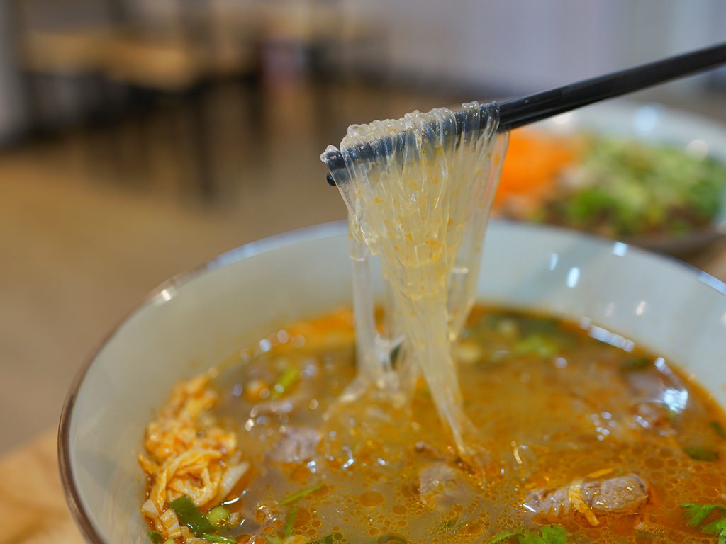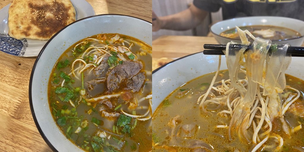 這個組合的內容是大碗的牛肉粉絲,單點一碗就要90元了,等於加燒餅只要多10元,划算許多,非常推薦大家可以試試看,湯頭真的超讚,牛骨的香醇與中藥的清香結合在一起,喝起來十分清爽溫順,一點都不油膩,牛肉是選用紐西蘭草飼牛,切成片狀口感偏向涮牛肉,配菜部分有蔥、香菜跟空運來台的山東白菜,吃起來清脆好吃~我最近晚餐不吃精緻澱粉,看到菜單有粉絲可以選覺得很開心,店家選用當地特有的山芋粉絲,不過每日限量供應,賣完會改以台灣的冬粉或寬粉替代,我剛好兩次來都沒吃到山芋粉絲,有沒有那麼幸運?下次一定要吃到啦