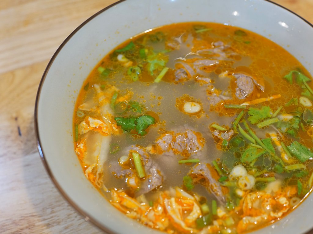麻燦淮南牛肉湯位於中華路二段,國泰醫院正對面,闆娘是安徽省淮南市人,嫁來台灣二十幾年,決定端出家鄉味分享給大家而開了這間店,主打正宗淮南牛肉湯,他們說在家鄉每天早上都是喝牛肉湯,是不是跟台南人很像呀~